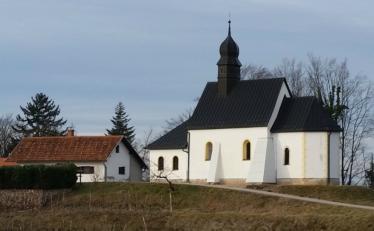 Ob pešpoti k cerkvi stoji zelo priljubljen križev pot.